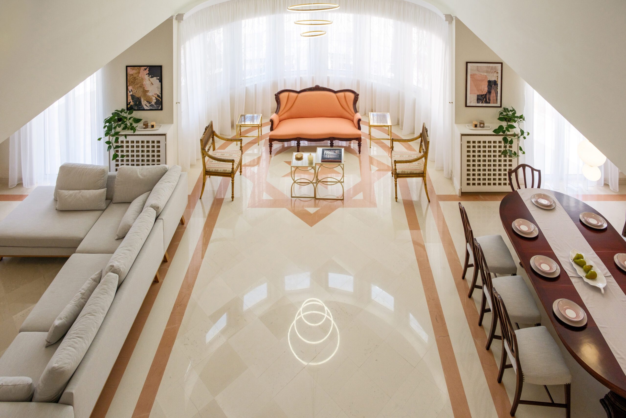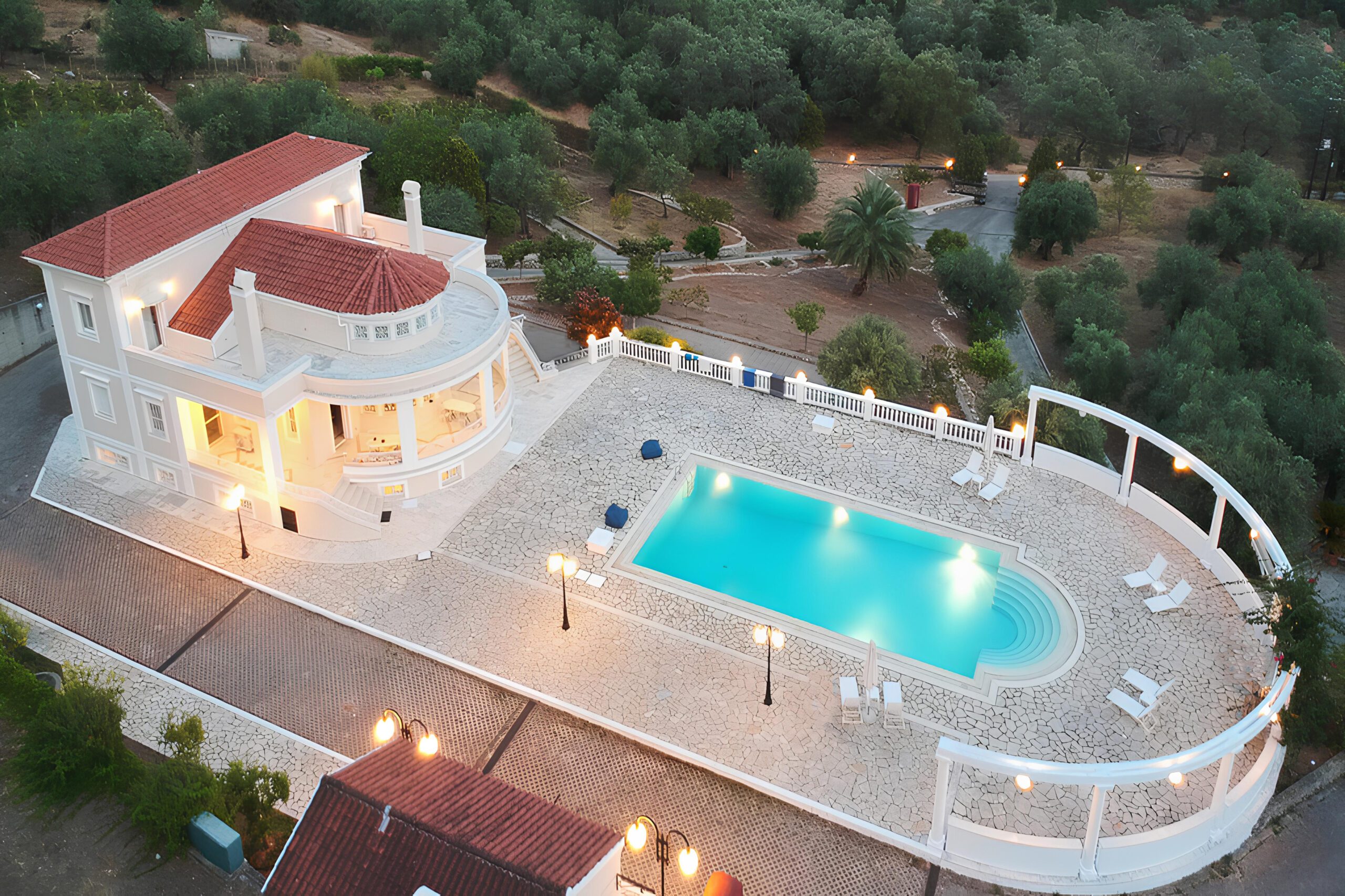 The residence is 500 sq.m, built in a 36000 sq.m. plot; with parking, private pool and a private garden, offering guests privacy and a sense of serenity.